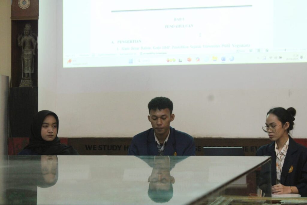 Yogyakarta – Himpunan Mahasiswa Program Pendidikan Sejarah Universitas PGRI Yogyakarta menggelar Musyawarah Anggota untuk membahas Anggaran Dasar dan Anggaran Rumah Tangga (AD/ART) serta Garis-Garis Besar Haluan Kerja (GBHK) HMP periode 2025/2026. Kegiatan ini berlangsung pada 17 Oktober 2025 di Ruang AVA Prodi Pendidikan Sejarah.